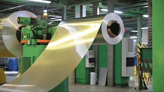 车间内,两条全自动高速生产线,正在进行这一场肉眼难以捕捉的“极速运转”,巨大的铝卷被缓缓送入前端,在强力的冲压声中,瞬间变身为一只只银色的杯体——这便是易拉罐的起点。
