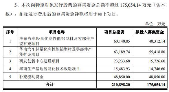 2月5日晚间,豪美新材(002988)发布2025年度向特定对象发行A股股票预案(修订稿)(以下简称预案),公司拟募集资金总额不超过17.51亿元,主要用于华东、华南两大汽车轻量化高性能铝型材及零部件产能扩充等项目。